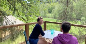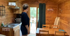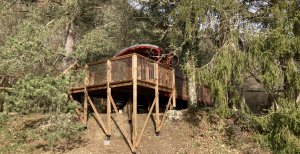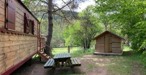 Pour les enfants ou les aventuriers, une cabane en bois (avec de vrais lits en 90 X 190 cm) est installée à côté de la Roulotte sur un emplacement ombragé, calme et protégé.